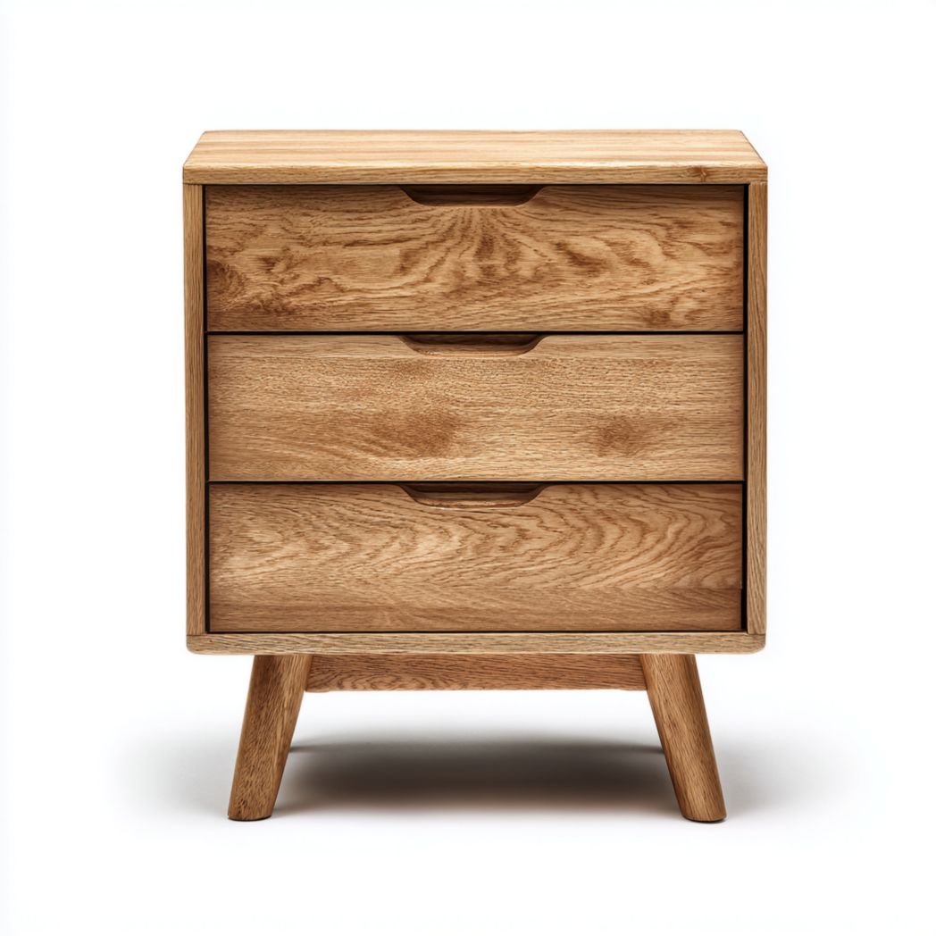 Szafka nocna z trzema szufladami lite drewno dębowe nogi drewniane